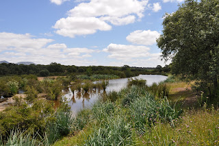 Pronto comenzó a insinuarse el Rio Yeguas al fondo, todavía lleva bastante caudal, falta poco para poder refrescarnos en sus frías aguas.